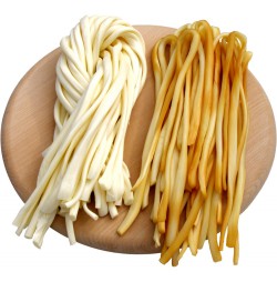Syrové nite vyrobené z kravského mlieka. Zamilujete si ich jedinečnú chuť pretože v pôvodnej receptúre sa nepočítalo s odoberením smotany, čo je vlastne mliečny tuk na ktorý sú viazané všetky typické chute a vône. Takýto výrobok odlíšite jemnou a vláčnou konzistenciou ktorú im tu dodáva. Takže žiadne tvrdé, suché a presolené nite. A verejne vyhlasujem, že ak Vám takéto dodám tak mi ich môžete vrátiť a zaplatím Vám plnú cenu späť.